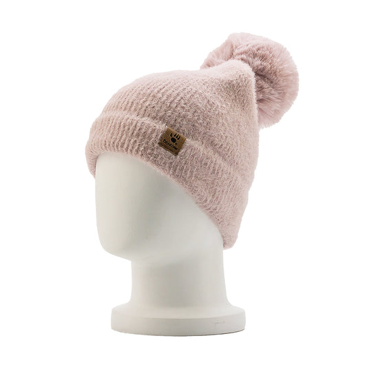LADIES FURRY CUFF HAT W/POM LOTUS