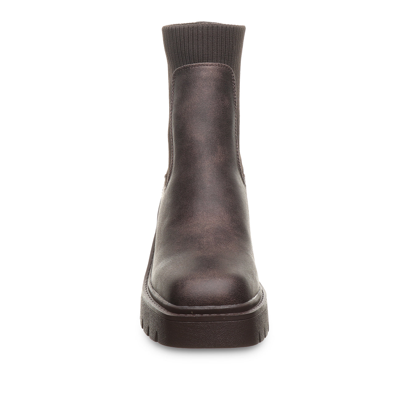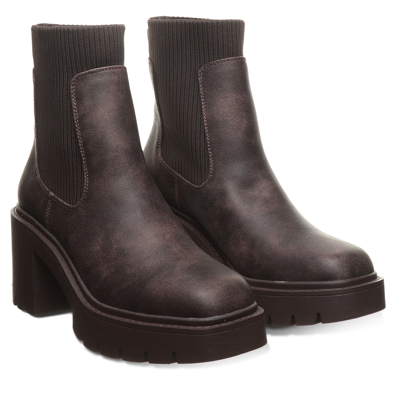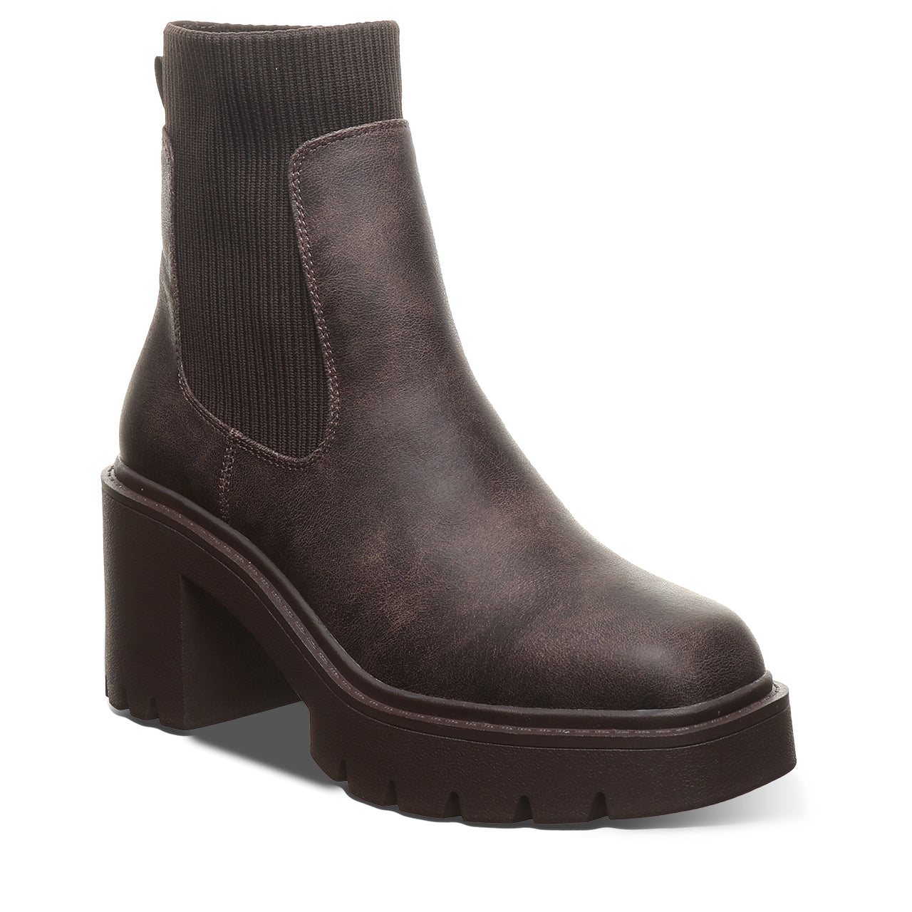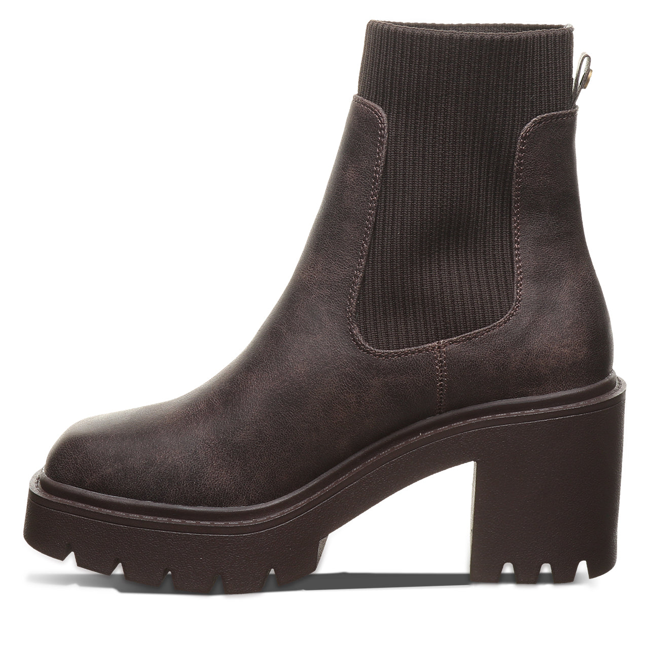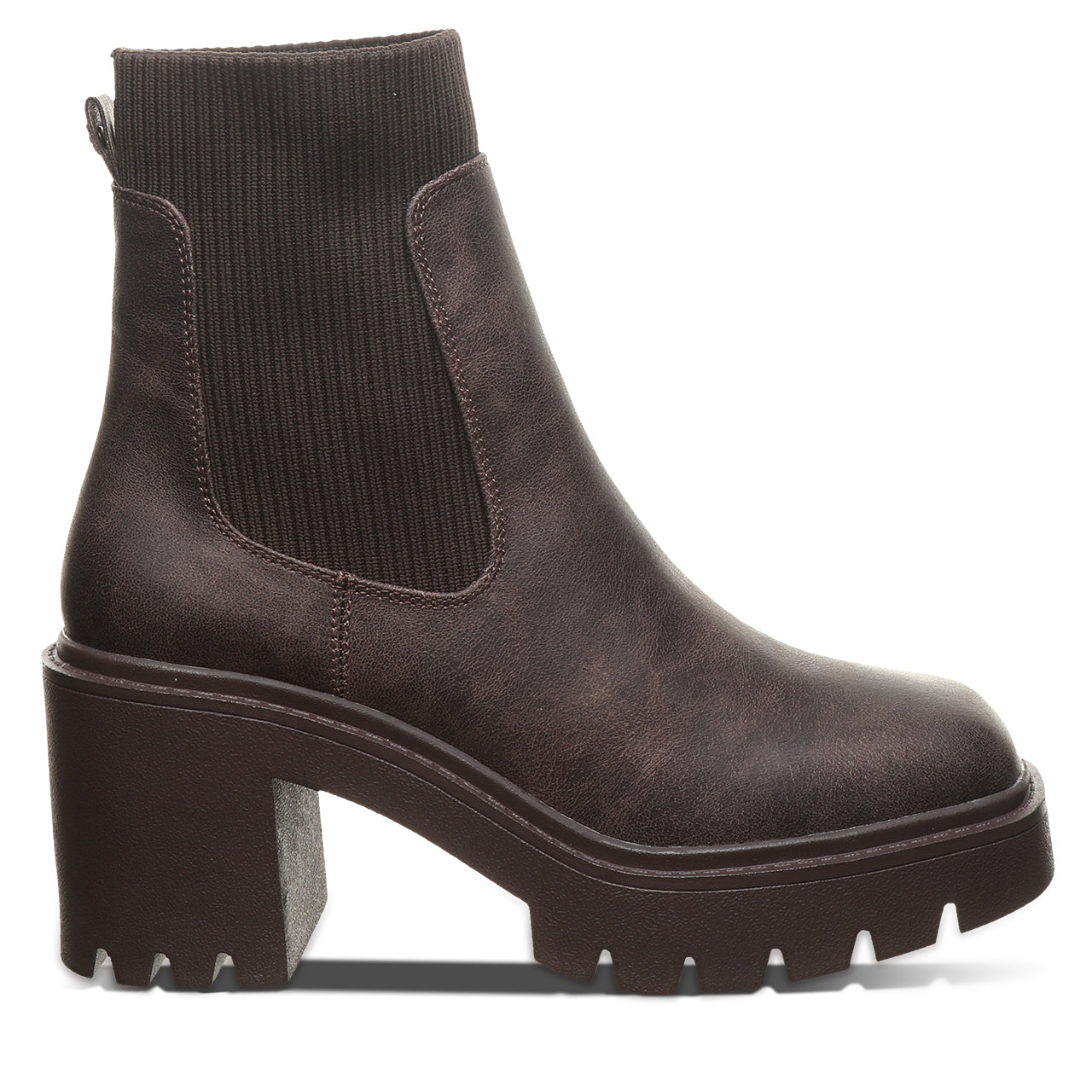 Meet your new go-to boot for bold, everyday style. This modern chelsea boot brings an edge to a timeless silhouette with a chunky block heel and statement lug sole. Crafted from sleek, smooth faux leather with stretchy side panels, it’s designed for easy on-and-off wear and a flexible, comfortable fit. The clean lines and minimalist shape make it effortlessly versatile - perfect for pairing with everything from jeans to dresses.