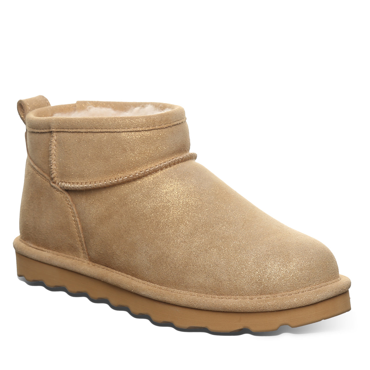 Shine bright with the Sparkle Shorty Boot. Crafted from soft, natural suede with a shimmering glitter finish, this cozy ankle boot adds a touch of glam to your everyday style. Lined with plush wool blend and set on a durable, lightweight sole, it keeps you warm and comfortable from morning coffee runs to evening strolls.